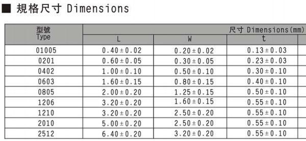 貼片電容和貼片電阻的規格尺寸(就是你說的”封裝“)采用英制代碼表示。